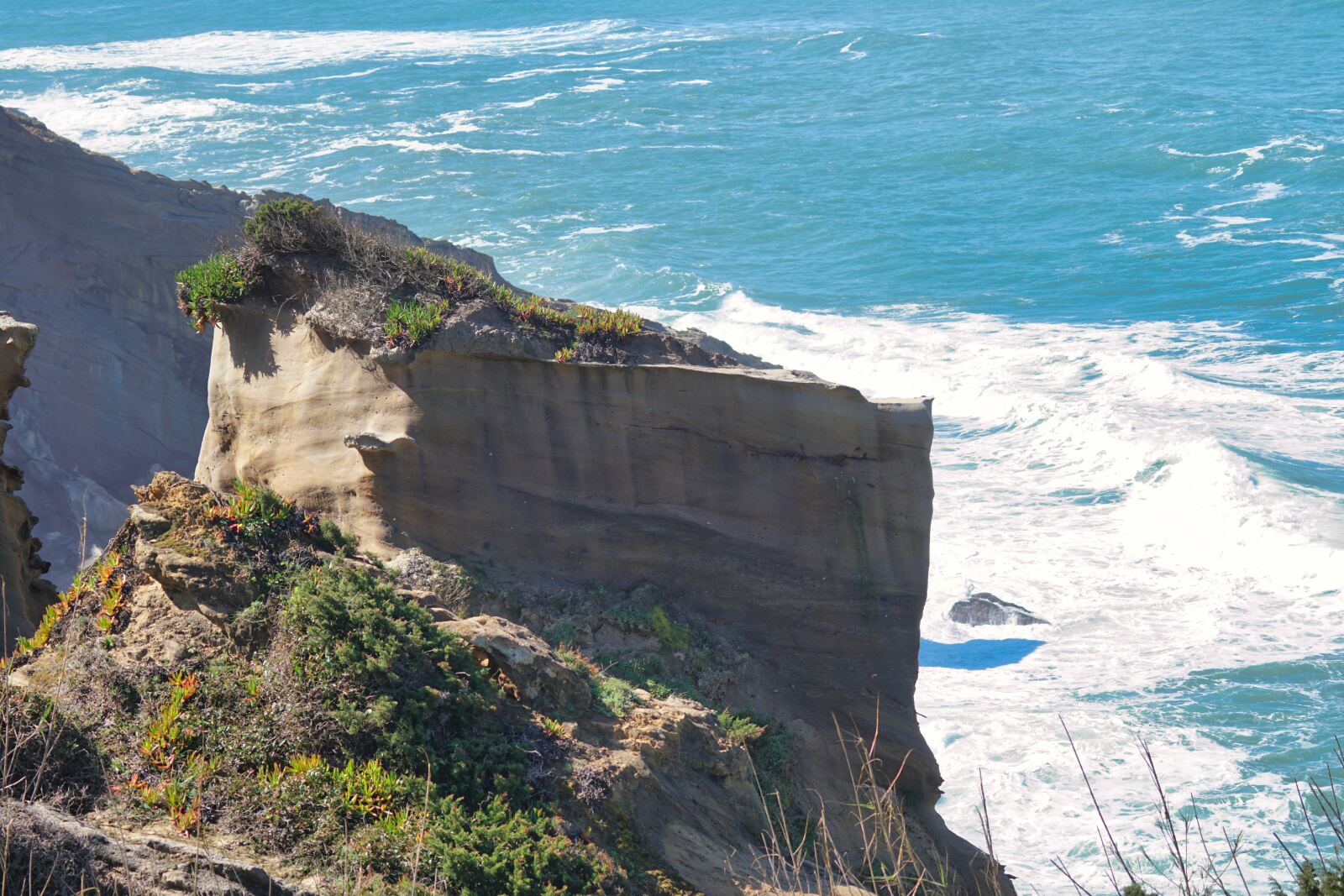 Ein schmaler Steig bringt uns in der Folge, im Auf und Ab oberhalb der Küstenlinie in die Richtung Norden. Viele einsame Plätze werden tangiert. Atemberaubende Aussichten gibt es kostenlos dazu. Manches Mal war der Verlauf des Pfades nicht sofort ersichtlich. Mit GPS Unterstützung hat sich die Hürde, jedoch einfach überwinden lassen. Da wir im März hier unterwegs waren, beglückte uns die Natur mit einer unglaublichen Blütenfülle.
